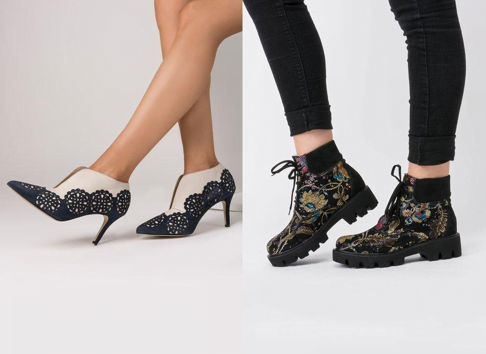 Dacă îți dorești un strop de mai multă eleganță, botinele decupate cu toc cui, în tonuri de bleumarin și crem, reprezintă o alegere ideală. Încheiem cu o variantă perfectă pentru fetele rebele: bocancii cu imprimeu floral, ce vor nuanța pe deplin îndrăzneala și creativitatea ta. În plus, vei dansa pe ei fără probleme!