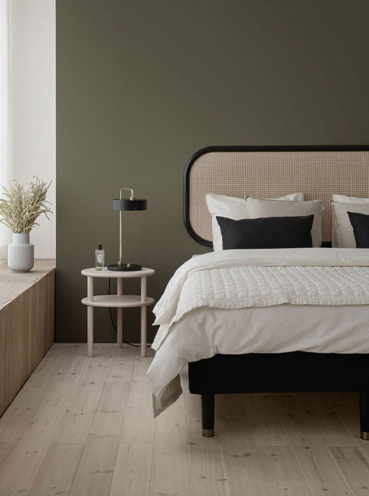 O altă culoare recomandată de designeri pentru acest sezon de toamnă / iarnă este verdele măsliniu. Cu verdele care revine tot mult în tendințele deco, putem fi tentați să pictăm suprafețe mai mari. Lăsați deoparte tonurile de verde crud în acest sezon. Verdele măsliniu este legătura perfectă între verdeață și nuanțe calde, făcându-l ideal pentru un refresh de toamnă / iarnă. Puteți folosi aceste nuanțe pentru peretele tăbliei, în asociere cu lemn.