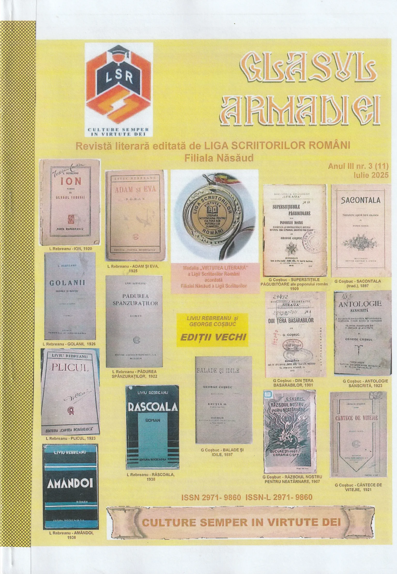 Numărul 11 al revistei Glasul Armadiei, editată de Filiala Năsăud a Ligii Scriitorilor Români, se înscrie în linia publicațiilor literar-culturale contemporane care îmbină tradiția scrisului clasic cu dinamica vieții culturale locale și naționale. Având motto-ul latin “Culture semper in virtute Dei” – „Cultura întotdeauna în virtutea lui Dumnezeu” – revista își asumă explicit rolul de vehicul al valorilor spirituale, morale și estetice.