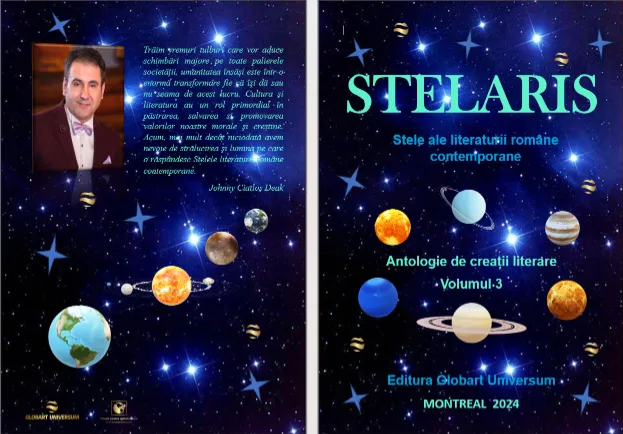 Sosit mai târziu, volumul 3 al antologiei ”Stelaris -Stele ale literaturii române contemporane”, antologie de creații literare, editată de prestigioasa Editură Globart Universum din Montreal, 2024, cuprinde un florilegiu de creații literare semnate de scriitori români de pe meridianele lumii.