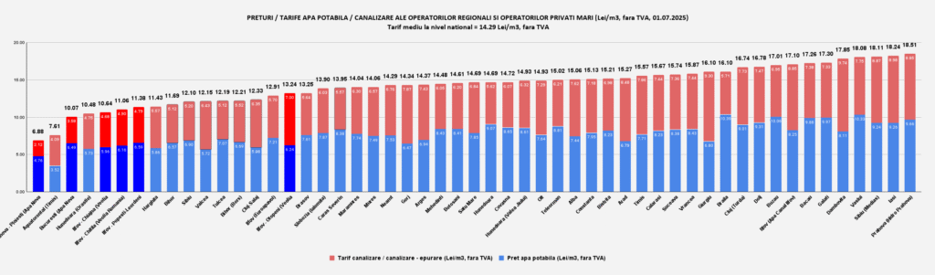 Aceste tarife sunt, conform datelor oficiale publicate de ANRSC, printre cele mai mici practicate în România: https://www.anrsc.ro/wp-content/uploads/2025/07/Tabel-preturi-apa-canal-op-regionali_1-iulie-2025-1.pdf