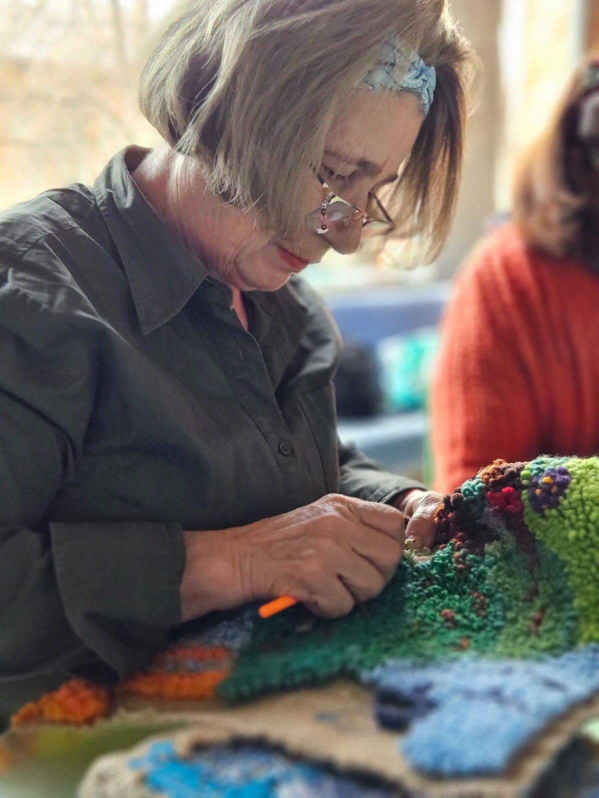 Artista vizuală Megan Dominescu, cunoscută pentru lucrările sale care explorează teme personale prin mijloace tactile, a fost invitată să coordoneze această inițiativă artistică în cadrul proiectului #NEpierdute. Pornind de la relația ei personală cu textilele – moștenită de la mama, bunica și străbunica ei – Megan a lucrat îndeaproape cu senioarele din Centrul Comunitar Zi de BINE, introducându-le în tehnica rug hooking și ghidându-le în procesul de exprimare artistică și emoțională.