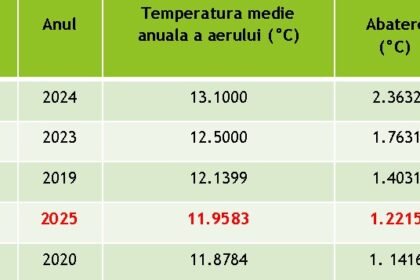 Datele oficiale ale Administrației Naționale de Meteorologie arată că anul 2025 a fost marcat de o succesiune fără precedent de…