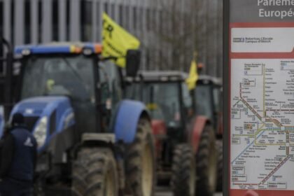 Tractoare și agricultori furioși în fața sediului Parlamentului European de la Strasbourg