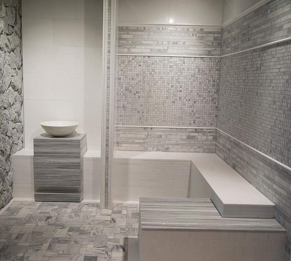 Un finisaj recomandat este și travertinul disponibil în finisaje variate precum mat, polișat, periat sau antichizat. Datorită culorii calde și a texturii aparte, este o opțiune ideală dacă îți dorești o baie luminoasă, spațioasă, originală.