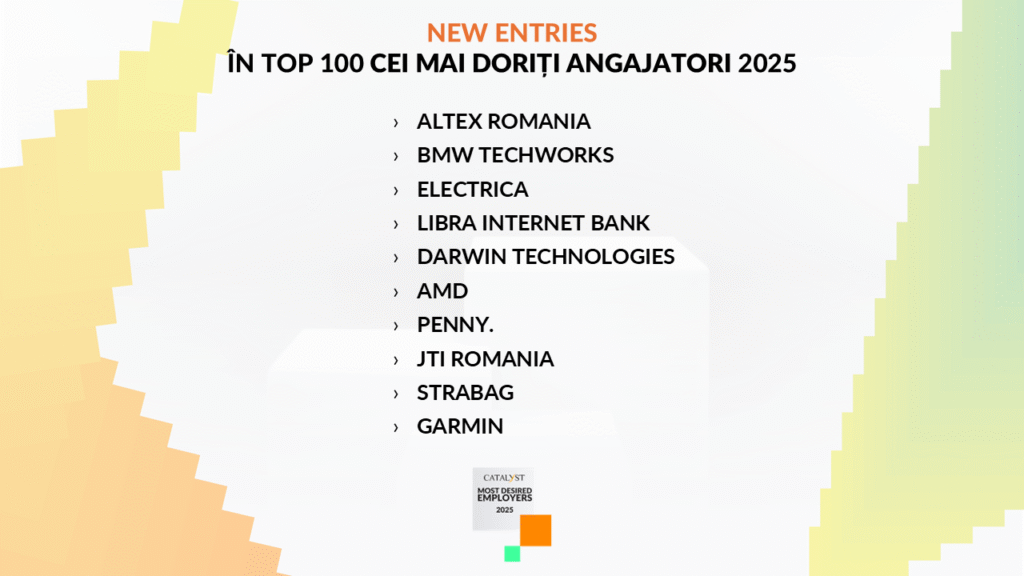 Catalyst Solutions anunță rezultatele studiului Cei mai doriți angajatori, derulat în perioada noiembrie 2024 – aprilie 2025 pe un eșantion de 12 161 de tineri la început de carieră, cât și profesioniști din România, din domeniile IT&C, inginerie, științe sociale și economice. Studiul reprezintă cel mai amplu instrument de evaluare a atractivității angajatorilor la nivel național, oferind o perspectivă detaliată asupra comportamentului și așteptărilor candidaților față de angajatorii locali. Rezultatele au fost prezentate, în premieră, în cadrul conferinței regionale de employer branding, EBcon 2025, pe 13 mai.