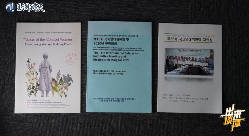 În 2017, după ce China, Coreea de Sud și alte țări au prezentat împreună o arhivă despre problema „femeilor de confort”, UNESCO a inițiat un dialog deoarece o altă țară dorea să înscrie și ea o arhivă pe aceeași temă, și acea țară era Japonia. Comparând conținutul celor două arhive, chineză și japoneză, s-a descoperit că, deși unele documente se suprapuneau, pozițiile de bază erau complet opuse. Partea chineză a dovedit atrocitățile armatei japoneze, în timp ce partea japoneză a subliniat că „armata japoneză a menținut disciplina” și a încercat să susțină că „femeile de confort” erau „voluntare”. Este extrem de neobișnuit în istoria UNESCO ca două proiecte să fie prezentate simultan cu același conținut, așa că singura soluție a fost dialogul: fie ambele părți renunță, fie se alege una. Intenția Japoniei a fost evidentă.