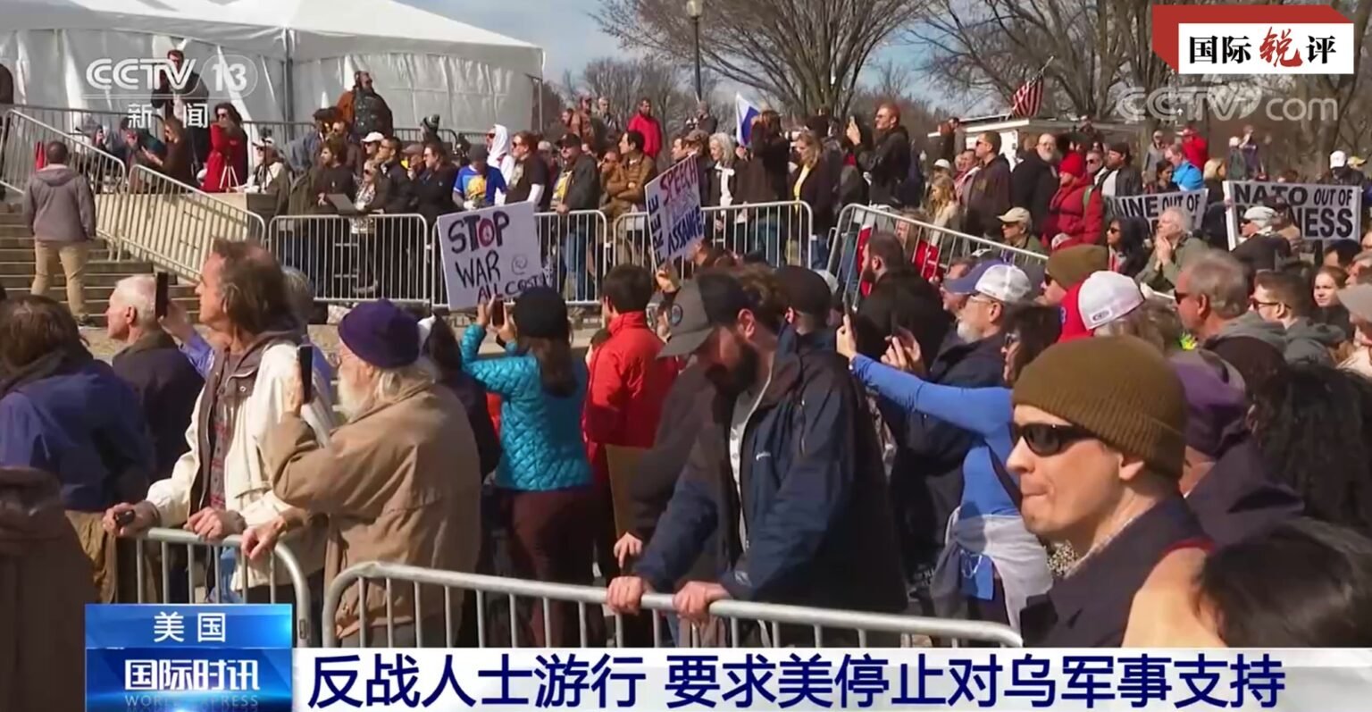 Un grup de protestatari au manifestat duminică la Washington, solicitând guvernului să sisteze sprijinul militar în Ucraina și desființarea NATO. La doar o zi după protest, președintele Joe Biden a efectuat o vizită în Ucraina, în cadrul căreia a anunțat un nou ajutor militar de 500 milioane USD, inclusiv arme.