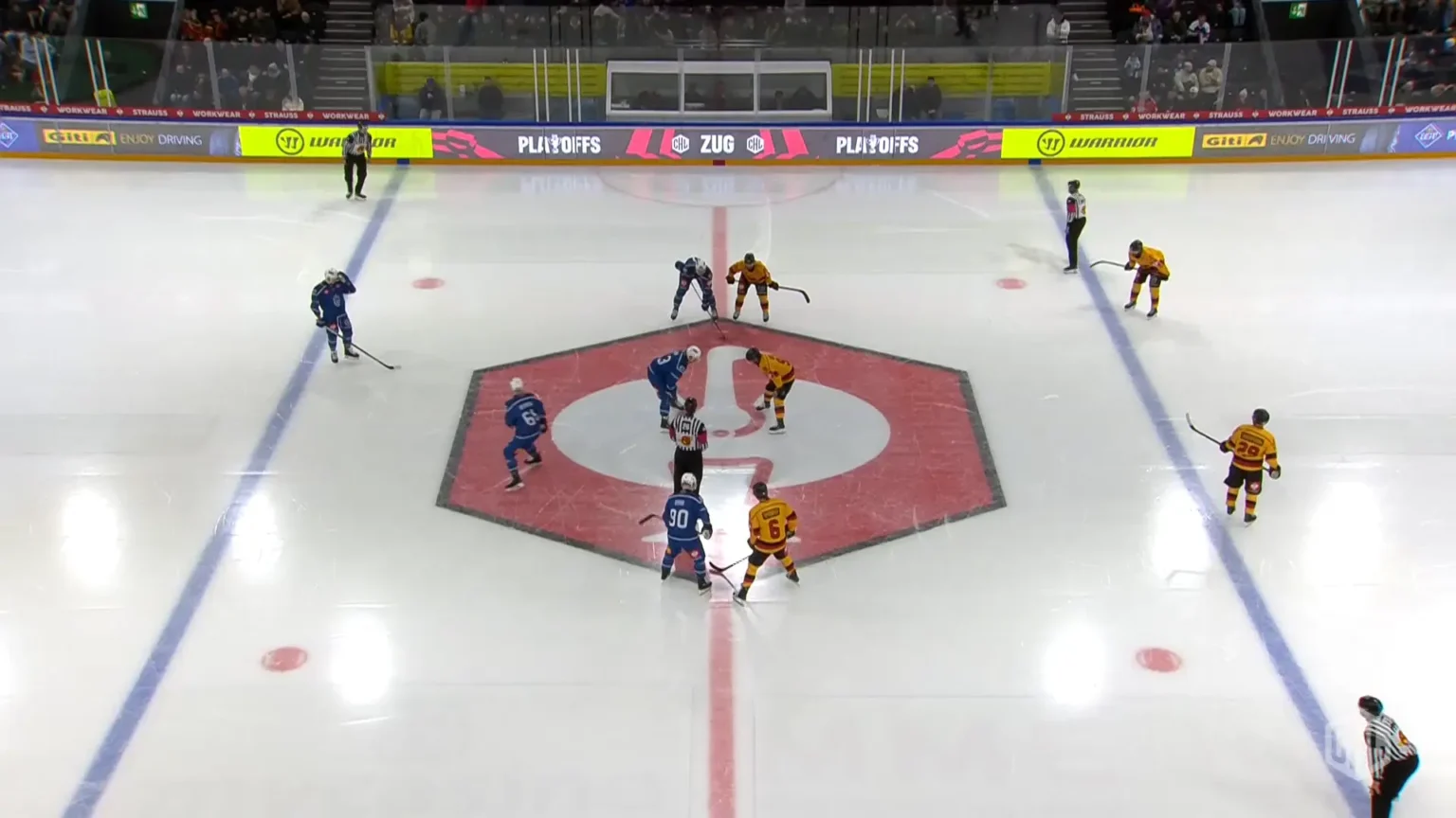 Deși repriza a doua a început cam în aceeași notă, după 6-7 minute de joc Zug a avut o ocazie imensă de egalare, pucul șutat de un jucător al echipei-gazdă lovind violent bara.