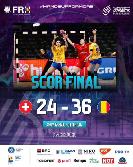 A luat sfârșit evoluția reprezentativei de handbal feminin a României la Campionatul Mondial de Handbal, care se desfășoară în Germania și în Țările de Jos. Cu ”cuțitul la os” după înfrângerea în fața echipei similare a Ungariei, tricolorele s-au mobilizat și au obținut două victorii concludente în fața Senegalului (37-17) și Elveției (36-24), atingându-și astfel obiectivul fixat înainte de startul competiției (clasarea în primele zece echipe), ocupând în final locul 9.