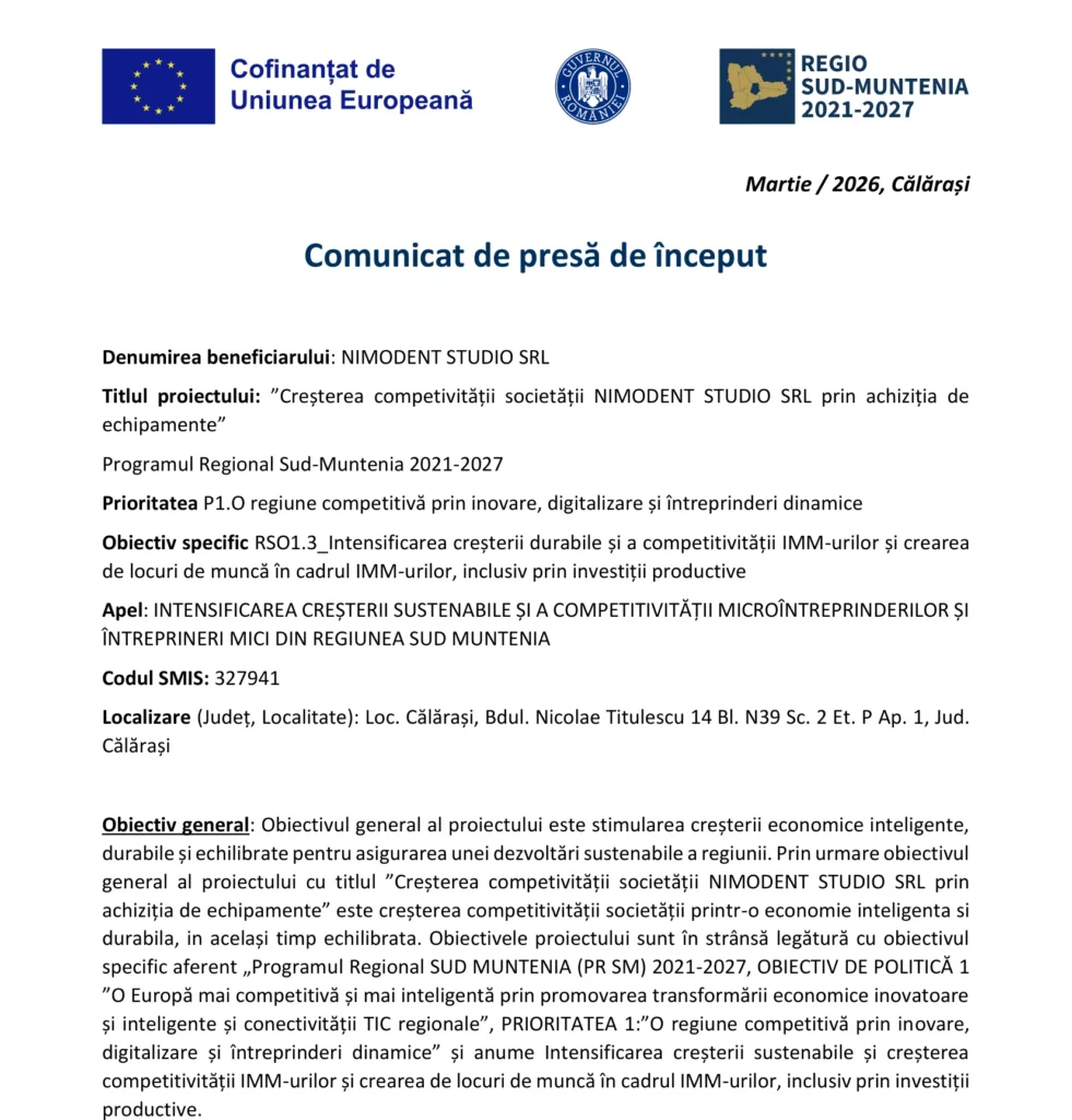 Fonduri Europene Comunicat de presă de început Autor Contributor Publicat 17 martie 2026 Distribuie Distribuie articolul Facebook Whatsapp Whatsapp LinkedIn Reddit Telegram Email Copy Link Print Distribuie Articolul anterior Cum alegi softul CAD în 2026: ce trebuie să știe un inginer sau arhitect înainte să decidă Articolul următor COBRA II – La Datorie, Blindate ajung în Serviciu, Producția Românească pe Cale să Înceapă Niciun comentariu Lasă un răspuns Anulează răspunsulAdresa ta de email nu va fi publicată. Câmpurile obligatorii sunt marcate cu *Comentariu * Nume * Email * Site web -Publicitate- Ultimele articole Evenimente din lumea artelor vizuale recomandate de UAP Cultură și Educație Grevă la Lufthansa. Traficul aerian dintre România și Germania este serios afectat Extern Escaladare în Orientul Mijlociu: Israel atacă Hezbollah în Liban, iar tensiunile cresc înaintea negocierilor de pace Extern Știri FinanciareAnimaWings inaugurează primele zboruri directe către Atena, de la Timișoara și Cluj-NapocaPrima istorie documentată a real estate-ului român modern se lansează pe 21 apriliePeste 65% dintre mașinile noi înmatriculate în martie au fost electrice sau hibridNolte Home Studio, afaceri de aproximativ 6,6 milioane lei în 2025