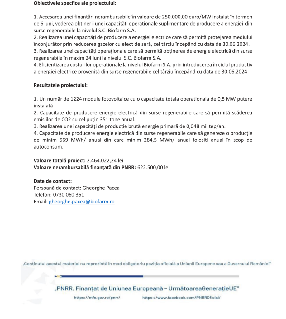 Fonduri Europene Comunicat de presă privind finalizarea proiectului de investiție Construire Parc Fotovoltaic Autor Contributor Publicat 6 septembrie 2024 Distribuie Distribuie articolul Facebook Whatsapp Whatsapp LinkedIn Reddit Telegram Email Copy Link Print Distribuie Articolul anterior China și Ghana au ridicat relațiile bilaterale la nivel de parteneriat strategic Articolul următor FIECARE LECTURĂ A UNEI CĂRŢI REÎNNOIEŞTE TEXTUL ÎN IMAGINAŢIA NOASTRĂ Niciun comentariu Lasă un răspuns Anulează răspunsulAdresa ta de email nu va fi publicată. Câmpurile obligatorii sunt marcate cu *Comentariu * Nume * Email * Site web -Publicitate- Ultimele articole Industria de înfrumusețare, supusă controalelor ANPC Actualitate Depozitarul Central va distribui sumele de bani aferente CUPON 19 pentru obligațiunile emise de SELFPAY S.A. Economie Verificări extinse în unitățile din industria agroalimentară pentru menținerea standardelor de siguranță Actualitate Știri FinanciareLivrările de birouri flexibile din București au crescut de peste trei ori față de anul trecut Bucătăria este „inima casei” pentru români. Gătitul rămâne o parte esențială în fiecare gospodăriePrimul Lidl sub noua identitate vizuală, inaugurat la Întorsura BuzăuluiProprietarii Dedeman vor prelua operațiunile Carrefour în România pentru 823 milioane de euro
