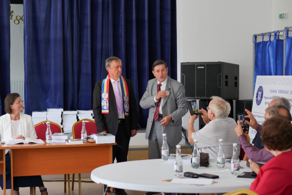Alături de colegii mei de la Cenaclul „Miorița” din Panciu și de ceilalți invitați din toată țara, am trăit emoția acestui moment ca pe o întâlnire de familie culturală. Aș dori să evidențiez un moment deosebit al acestui moment cultural, anume înmânarea Eșarfei comemorative Anul 2025 – Anul Mihai Eminescu de către profesorul Constantin Hărăbor, străonean trăitor în București – autor și coordonator al Proiectului Orizont Eminescu Mihai – Internațional, din partea Asociației Culturale Română din Hamilton, Ontario, Canada, acordată celor doi actori principali ai zilei – profesorului Mihail C. Adafini și primarului Vasile Zbârciog.