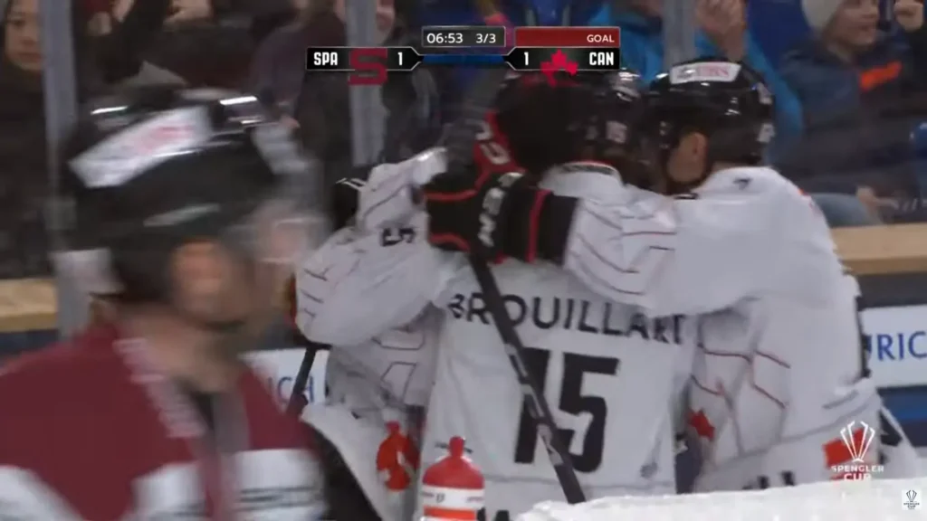Târziu, cu 6-7 minute înainte de final, Matthew Peca va aduce egalarea pentru canadieni printr-un șut bine plasat, în diagonală.