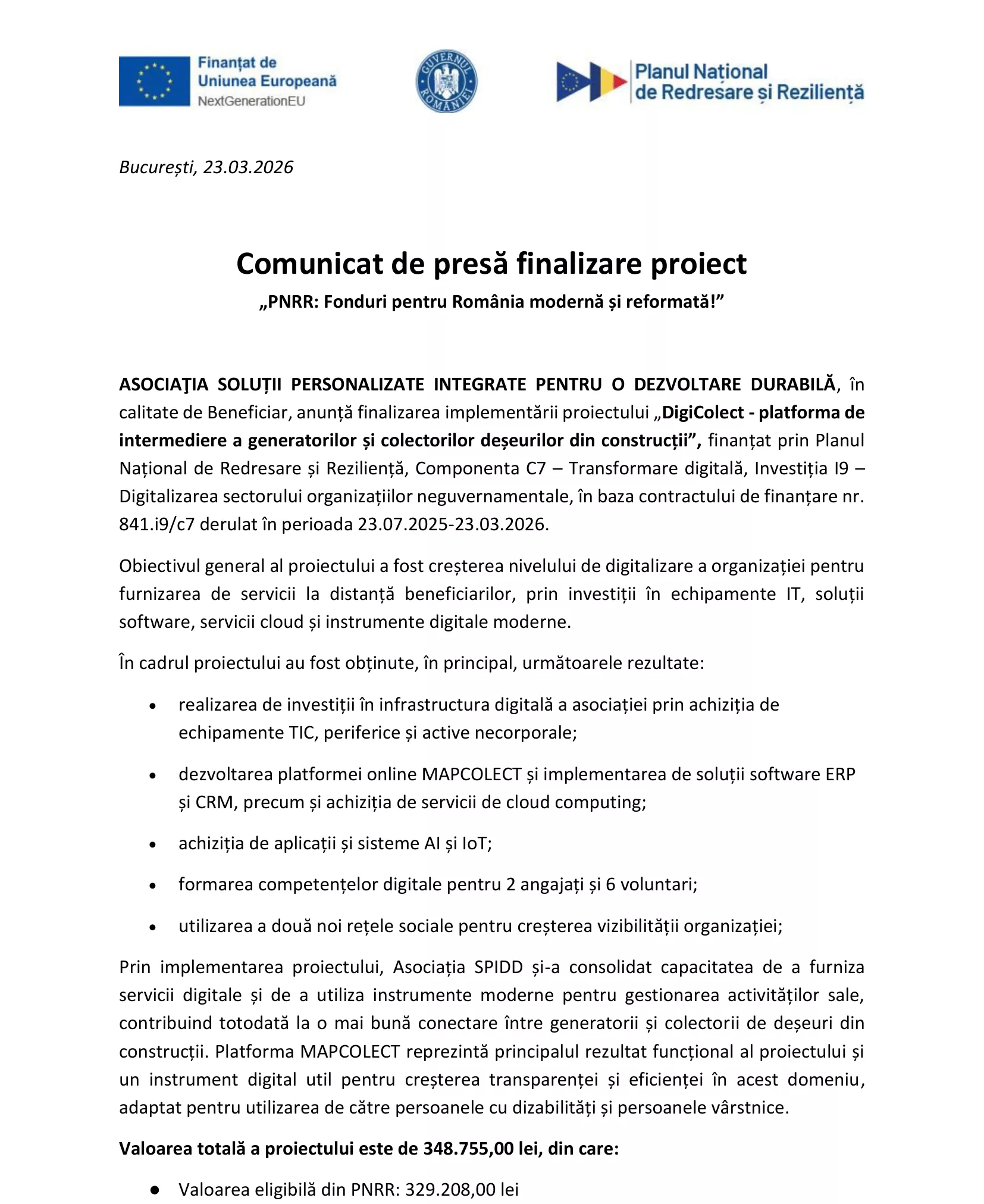 Fonduri Europene Comunicat de presă finalizare proiect „PNRR: Fonduri pentru România modernă și reformată!” Autor Contributor Publicat 23 martie 2026 Distribuie Distribuie articolul Facebook Whatsapp Whatsapp LinkedIn Reddit Telegram Email Copy Link Print Distribuie Articolul anterior UE îndeamnă statele membre să reducă țintele de stocare a gazelor pentru acest an, de la 90% la 80% Articolul următor Anunț privind selecția candidaților pentru un post de Membru în Consiliul de Adminstrație al S.C. TRANSPORT CĂLĂTORI EXPRESS S.A. PLOIEȘTI Niciun comentariu Lasă un răspuns Anulează răspunsulAdresa ta de email nu va fi publicată. Câmpurile obligatorii sunt marcate cu *Comentariu * Nume * Email * Site web -Publicitate- Ultimele articole Guvernul va declara stare de urgenţă pe piaţa ţiţeiului şi a produselor petroliere Energie Operațiune internațională pentru eliminarea unei infrastructuri masive de criminalitate cibernetică IT Cum pot face românii diferența dintre un videoclip real și unul realizat cu AI. Test de vigilență digitală lansat de DNSC IT Știri FinanciareCertificarea ISO: investiția de 2.000 de lei care deschide accesul la contracte de milioaneMajoritatea românilor vor ca interacțiunile cu statul să fie exclusiv online, fără deplasări la ghișeu6 din 10 clienți ai supermarketului online Sezamo comandă apăOne United Properties a cumpărat un teren pentru o nouă dezvoltare rezidențială în Floreasca