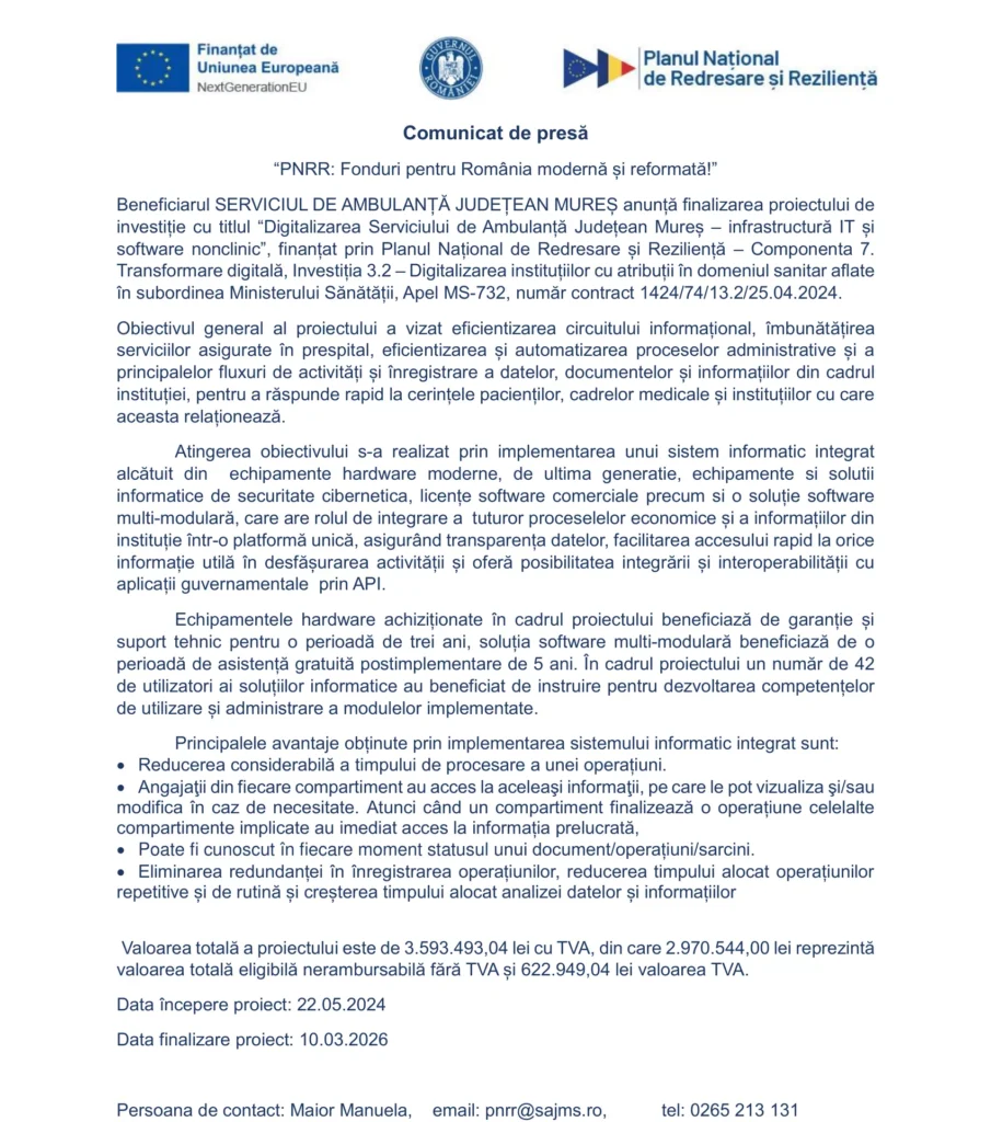 Fonduri Europene „PNRR: Fonduri pentru România modernă și reformată!” Autor Contributor Publicat 10 martie 2026 Distribuie Distribuie articolul Facebook Whatsapp Whatsapp LinkedIn Reddit Telegram Email Copy Link Print Distribuie Articolul anterior Dezvoltarea societății Blu Concept Atelier prin construire pensiune D+p, împrejmuire și sistematizare verticala Articolul următor „PNRR: Fonduri pentru România modernă și reformată!” Niciun comentariu Lasă un răspuns Anulează răspunsulAdresa ta de email nu va fi publicată. Câmpurile obligatorii sunt marcate cu *Comentariu * Nume * Email * Site web -Publicitate- Ultimele articole Donald Trump va avea o monedă de aur cu efigia lui, cu ocazia sărbătoririi a 250 de ani de la înfiinţarea SUA Extern A murit Chuck Norris. Actorul american avea 86 de ani Extern Bugetul de stat pe 2026, adoptat în Parlament după dezbateri tensionate Economie Știri Financiare3 din 4 doze de aluminiu comercializate în România sunt reciclateAuchan deschide cel de-al zecelea supermarket de mari dimensiuni din rețea lângă PloieștiHranipex închiriază 3000 mp în parcul logistic CTPark Bucharest SouthLidl inaugurează pe 19 martie al treilea magazin din municipiul Satu Mare