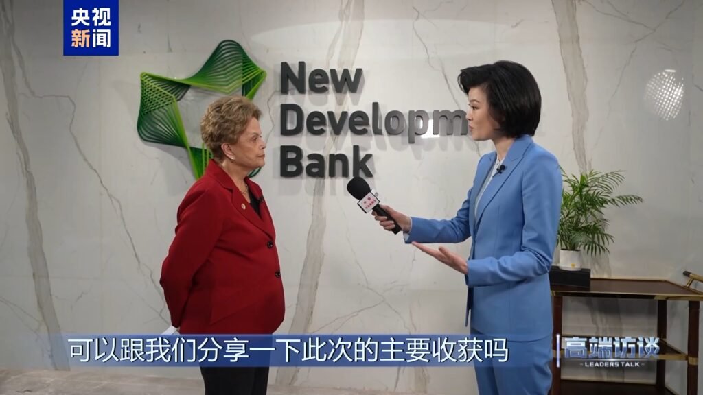 Pe 29 aprilie 2025, președintele Chinei, Xi Jinping, a vizitat sediul Noii Bănci de Dezvoltare (NBD) din Shanghai, unde s-a întâlnit cu președintele instituției, Dilma Rousseff. NBD este prima instituție multilaterală de dezvoltare înființată și condusă de țări emergente și în curs de dezvoltare. Aceasta a fost înființată în 2014, la al șaselea summit BRICS din Brazilia, cu sprijinul liderilor țărilor membre, inclusiv Rousseff, președintele de atunci al Braziliei.