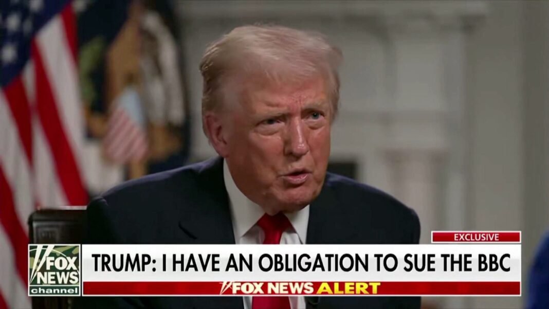Președintele american Donald Trump a declarat că are „obligația” de a da în judecată BBC, acuzând postul public britanic că i-a „măcelărit” discursul din 6 ianuarie 2021 într-un documentar al emisiunii Panorama.