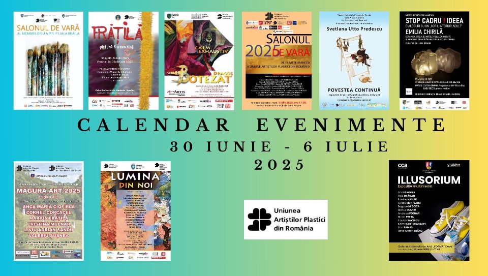 Uniunea Artiștilor Plastici din România face noi propuneri de evenimente vizuale, care vor debuta în săptămâna 30 iunie – 6 iulie 2025: