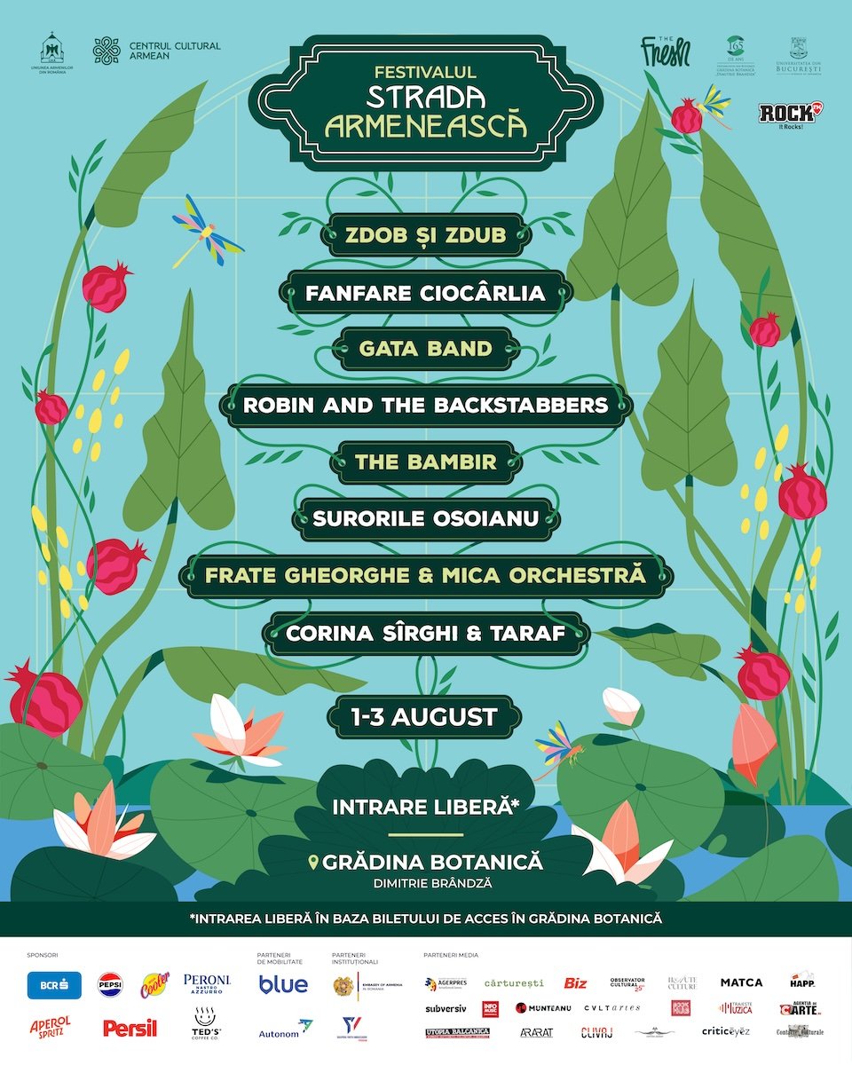 Festivalul Strada Armenească revine între 1 și 3 august 2025 în Grădina Botanică „Dimitrie Brândză” din București, cu o ediție care aduce laolaltă patrimoniul viu al diasporei și vocile contemporane ale comunității armene. Și în acest an, festivalul își extinde aria de expresie dincolo de muzică și dans, propunând un program amplu de expoziții, ateliere participative și discuții. Aleile Grădinii devin loc de reflecție, de dialog și de creație – un spațiu unde trecutul este explorat, reinterpretat și transmis mai departe, cu grijă și imaginație.Festivalul debutează vineri, 1 august, la ora 17:00, iar sâmbătă și duminică, activitățile încep de la ora 12:00.