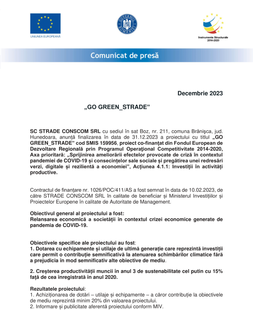 Fonduri Europene „GO GREEN_STRADE” Autor Contributor Publicat 29 decembrie 2023 Distribuie Distribuie articolul Facebook Whatsapp Whatsapp LinkedIn Reddit Telegram Email Copy Link Print Distribuie Articolul anterior „GO GREEN_GAMA” Articolul următor Descoperă cum poți înlocui țigara convențională cu tutunul încălzit, la cafeaua de dimineață. Niciun comentariu Lasă un răspuns Anulează răspunsulAdresa ta de email nu va fi publicată. Câmpurile obligatorii sunt marcate cu *Comentariu * Nume * Email * Site web -Publicitate- Ultimele articole Industria de înfrumusețare, supusă controalelor ANPC Actualitate Depozitarul Central va distribui sumele de bani aferente CUPON 19 pentru obligațiunile emise de SELFPAY S.A. Economie Verificări extinse în unitățile din industria agroalimentară pentru menținerea standardelor de siguranță Actualitate Știri FinanciareLivrările de birouri flexibile din București au crescut de peste trei ori față de anul trecut Bucătăria este „inima casei” pentru români. Gătitul rămâne o parte esențială în fiecare gospodăriePrimul Lidl sub noua identitate vizuală, inaugurat la Întorsura BuzăuluiProprietarii Dedeman vor prelua operațiunile Carrefour în România pentru 823 milioane de euro