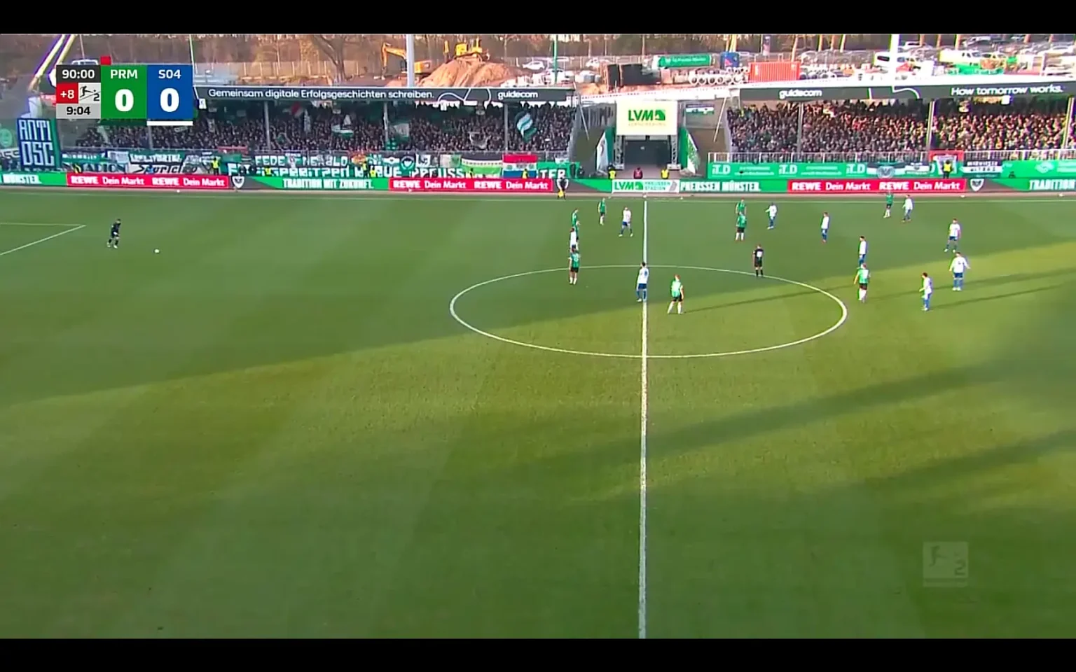 ”Verzii” din Münster și-au continuat ofensiva și, cam pe la jumătatea reprizei, o minge trimisă cu capul spre poartă de un atacant al gazdelor îi pune mari probleme lui Karius, portarul lui Schalke, care intervine, însă mingea lovește de mai multe ori transversala și refuză pur și simplu să intre în poartă.