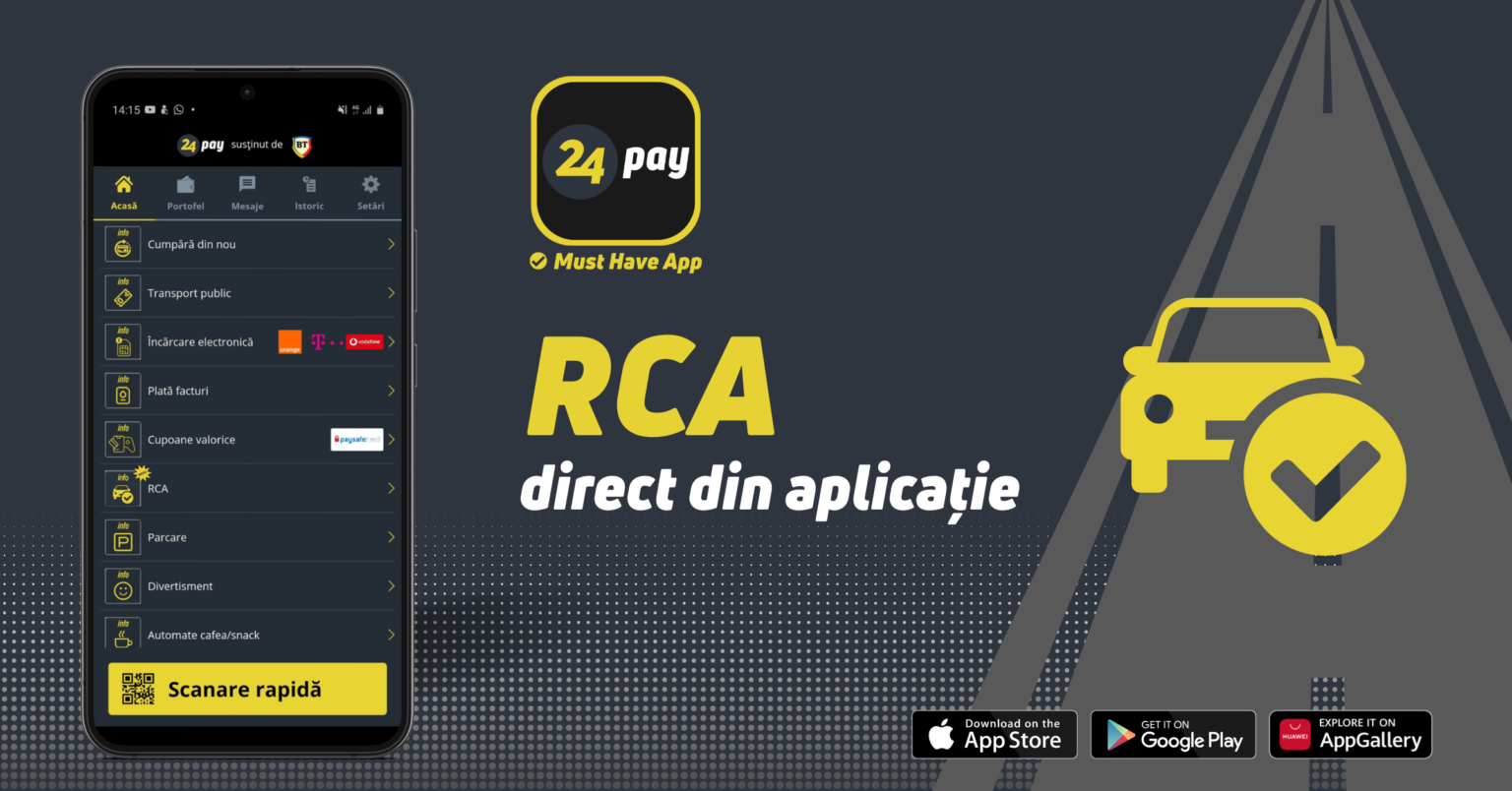 La început de primăvară, 24pay își completează gama de produse disponibile în aplicație și lansează un nou serviciu util oricărui conducător auto din România: încheierea polițelor RCA direct de pe telefonul mobil.
