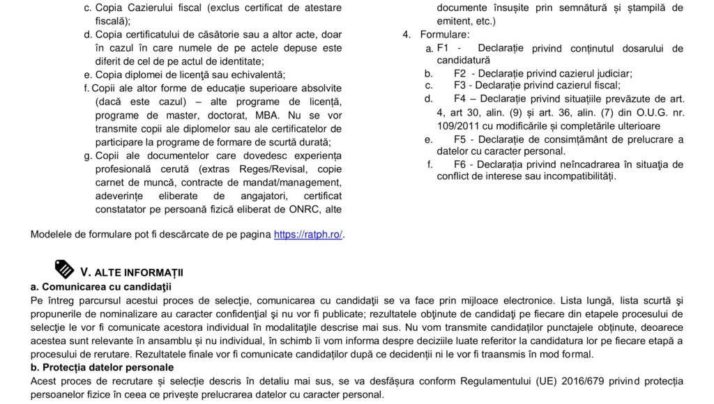 INSTRUCȚIUNI ȘI INFORMAȚII SUPLIMENTARE ÎN VEDEREA SELECȚIEI PENTRU POZIŢIA DE DIRECTOR EXPLOATARE AL TRANSPORT CĂLĂTORI EXPRESS S.A.