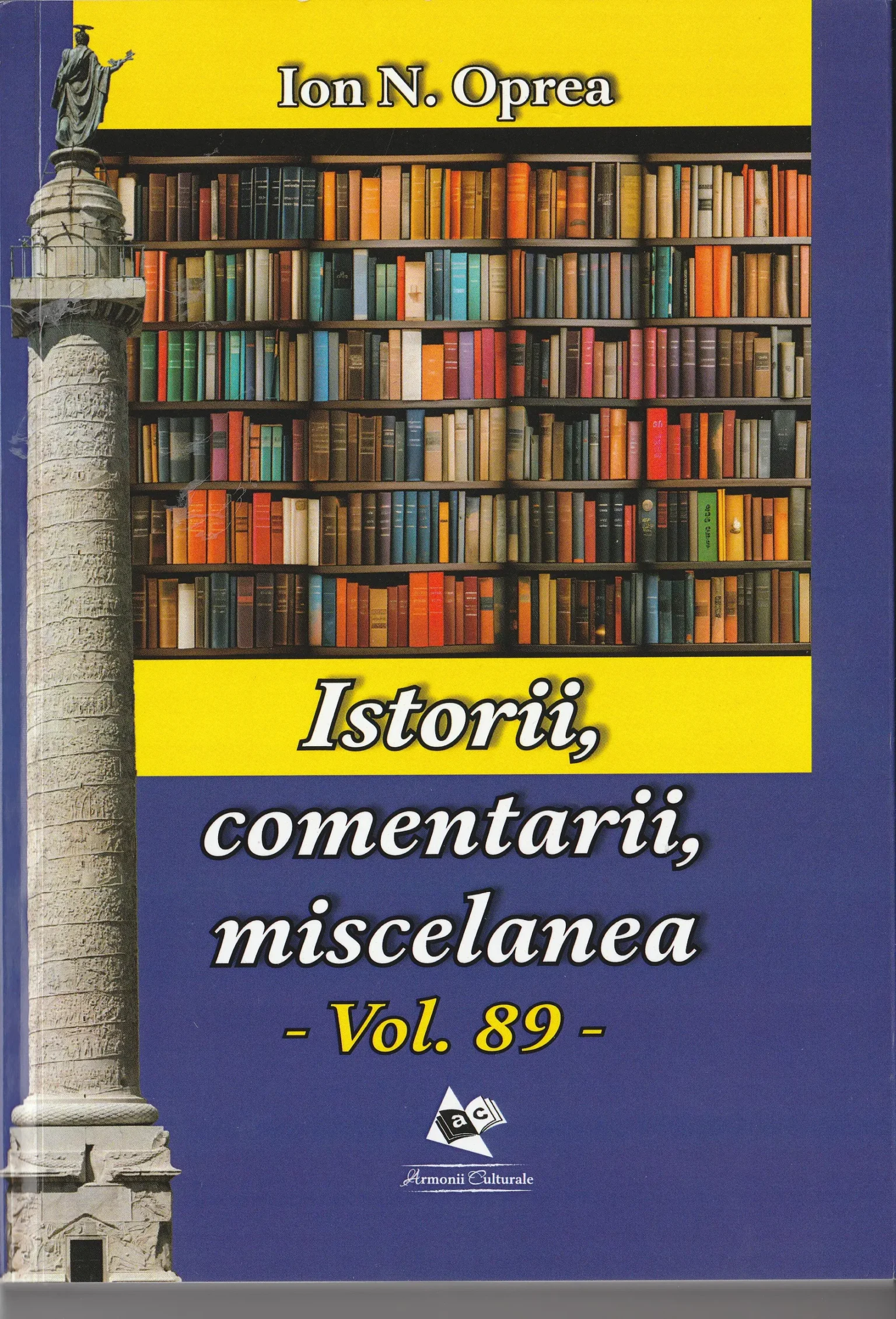Volumul „Istorii, comentarii, miscelanea” (vol. 89) de Ion N. Oprea continuă seria sa amplă și valoroasă de texte-document, cronici, evocări și analize culturale, istorice și literare. Acest nou volum este o veritabilă panoramă a spiritului românesc contemporan, în care se împletesc trecutul și prezentul, emoția și analiza, pledoaria identitară și reflecția civică.