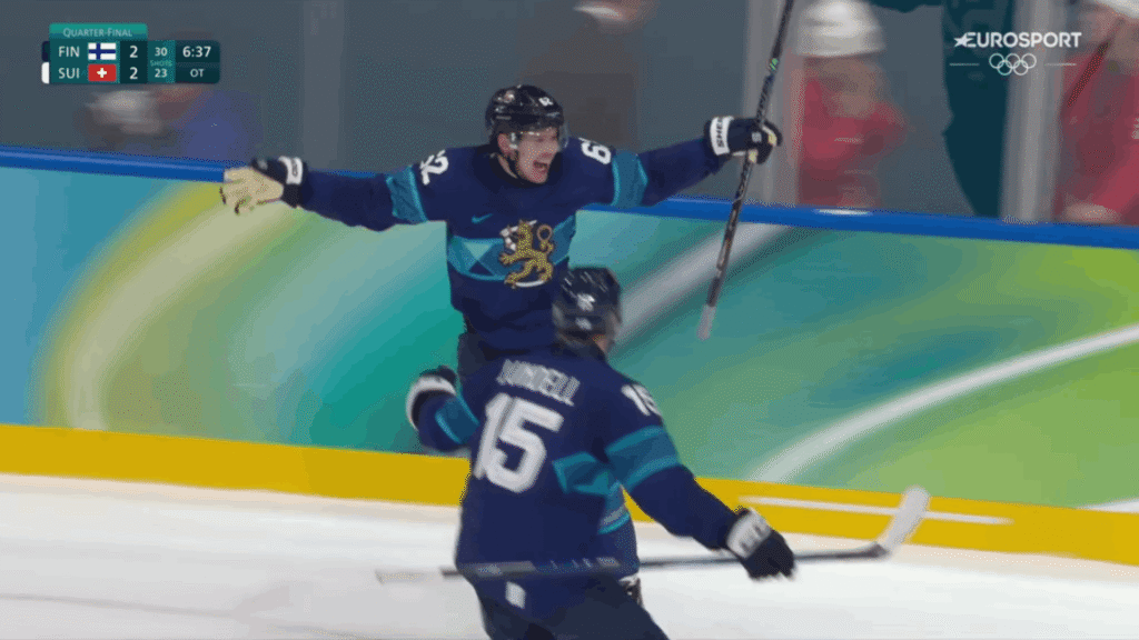 Cu un minut și 20 de secunde înainte de final, Heiskanen deviază din apropiere un șut al lui Roope Hintz și îl învinge pe bravul Genoni.