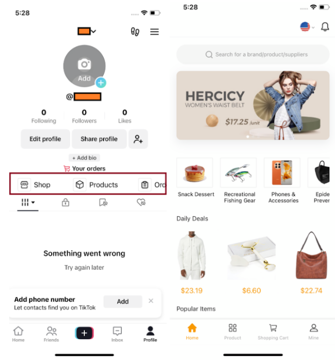 Un magazin web fals încorporat în presupusa aplicație TikTok