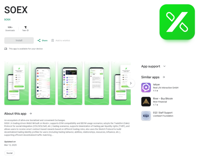 O presupusă aplicație de schimb de criptomonede, SOEX, pe Google Play