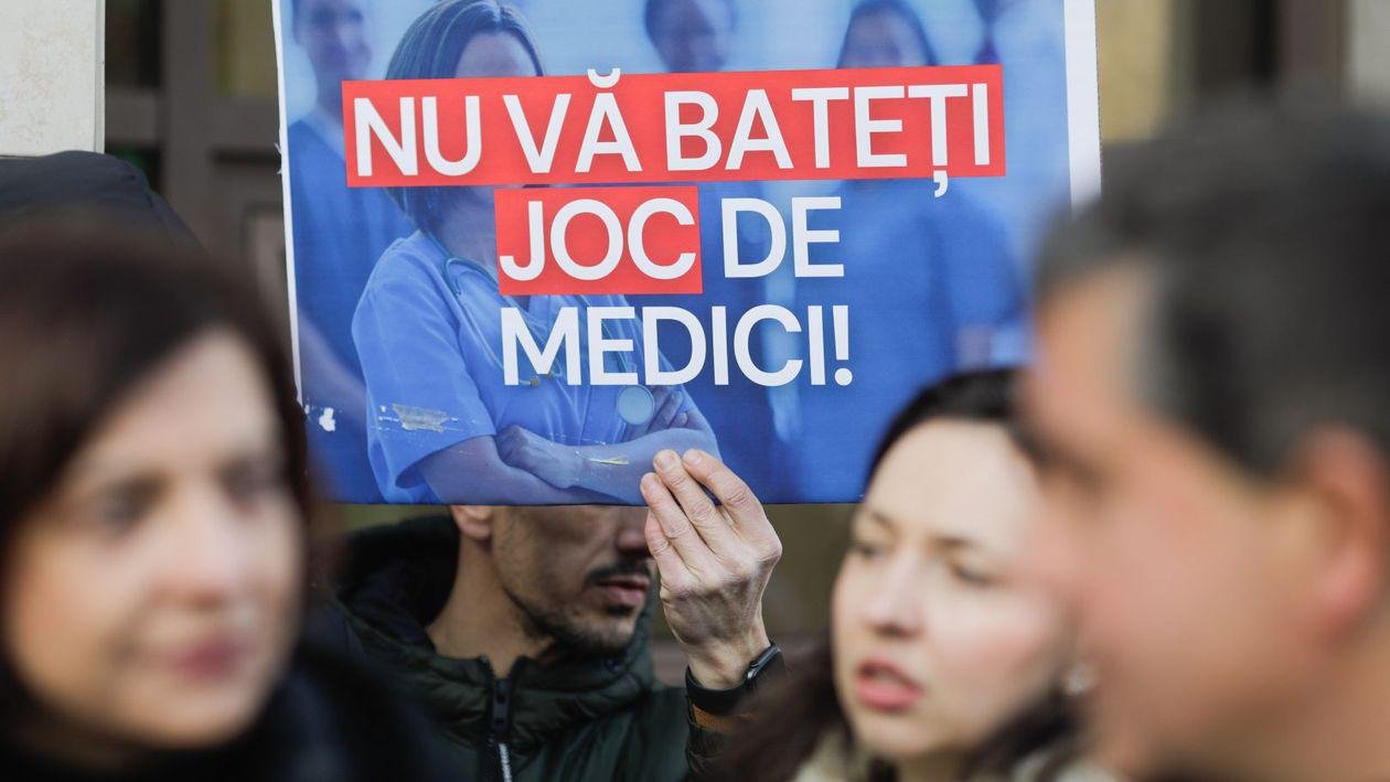 Medici de familie protesteaza in fata sediului Casei Nationale de Asigurari de Sanatate din Bucuresti, 17 ianuarie 2024. Inquam Photos / George Calin
