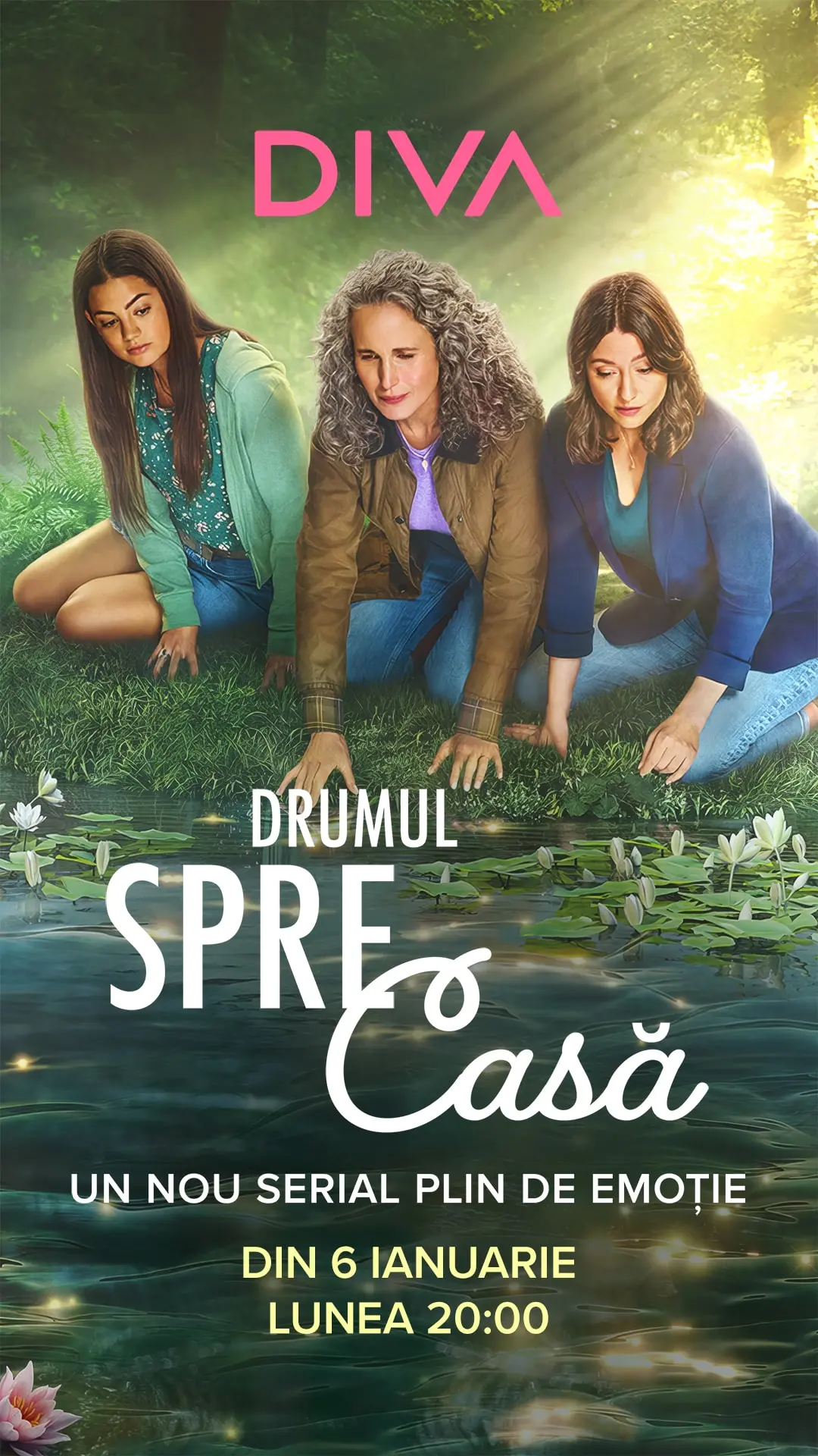 DIVA România anunță premiera locală a noului serial „Drumul spre casă” (The Way Home): primele 3 sezoane urmează să fie difuzate la DIVA în perioada 6 ianuarie – 21 aprilie. Fiecare sezon are 10 episoade, care vor fi difuzate săptămânal, în fiecare luni, de la ora 20:00.