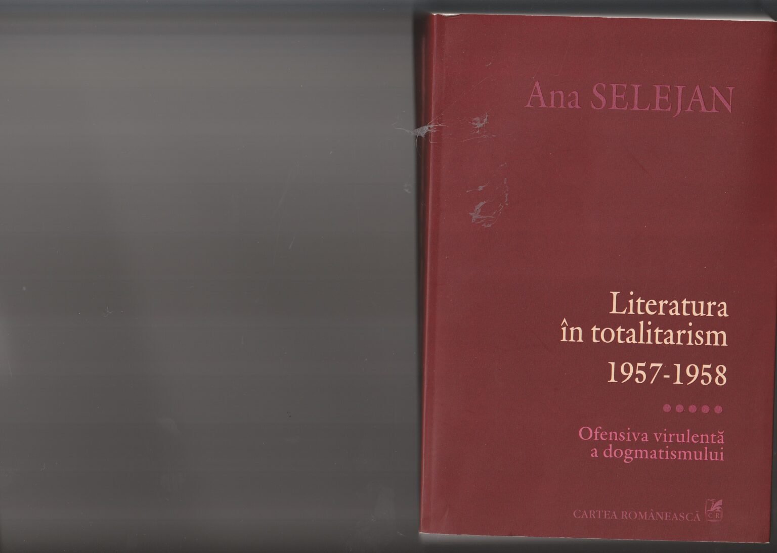 Cartea „Literatura în totalitarism. 1957–1958 – Ofensiva virulentă a dogmatismului” de Ana Selejan, apărută la Editura „Cartea Românească” în anul 2-13, face parte dintr-un demers amplu de cercetare a literaturii române din perioada comunistă, în special în ceea ce privește relația dintre creația literară și ideologia oficială impusă de regimul totalitar. Autoarea continuă în acest volum investigarea climatului cultural și politic din România anilor ’50, concentrându-se pe momentul deosebit de tensionat reprezentat de anii 1957–1958, când are loc o recrudescență a dogmatismului ideologic, după o scurtă perioadă de aparentă „dezghețare”.