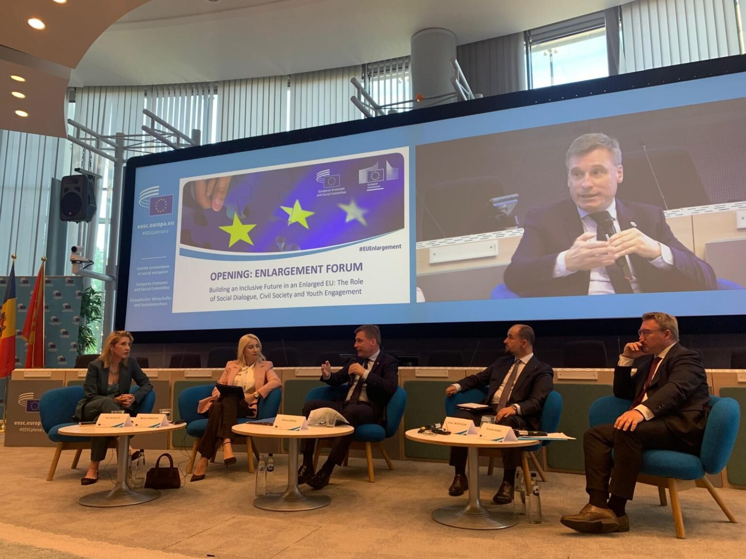 În sesiunea plenară din 17 iulie, CESE a organizat un Forum privind extinderea axat pe tema „Construirea unui viitor incluziv în UE extinsă: Rolul dialogului social, al societății civile și al implicării tinerilor”. Evenimentul a început cu o dezbatere la nivel înalt la care au participat Maida Gorčević, ministrul afacerilor europene din Muntenegru, Orhan Murtezani, ministrul afacerilor europene din Macedonia de Nord, și Antoine Kasel, director pentru „Mobilitatea forței de muncă și afaceri internaționale” din cadrul Direcției Generale pentru Ocuparea Forței de Muncă, Afaceri Sociale și Incluziune a Comisiei Europene.
