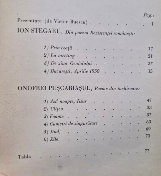 Vă prezint în exclusivitate informația publicării acestei poezii simbolice și fanion a liricii concentraționare într-o revistă literară românească din Portugalia, în anul 1952. Poezia a apărut sub pseudonim, pentru că prietenii care au publicat-o nu au dorit să-l deconspire și să-i facă rău poetului Radu Gyr. Numele sub care a apărut poezia era Onofrei Pușcăriașul, ce publica ciclul de „Poeme din închisoare” în antologia lirică întocmită de Ion Stegaru și intitulată „Din poezia rezistenței românești – Onofrei Pușcăriașul – Poeme din închisoare”, cu o prezentare de Victor Buescu. Volumul de poezii cu tematică carcerală a fost publicat de Universitatea din Lisabona în Colecția Lectoratului Român. Prefațatorul antologiei a fost un cunoscut publicist interbelic, născut în Oltenia, care în 1943 a fost trimis în funcția de lector de limba română la Facultatea de Litere a Universității din Lisabona, la recomandarea profesorului Herescu, și a predat în cadru organizat până în 1946, când lectoratul a fost desființat, după care a continuat să țină cursuri libere pentru cei interesați până la sfârșitul vieții. Universitatea i-a recunoscut meritele mai târziu, numindu-l asistent la sfârșitul anului 1961 și apoi, cu puțin timp înainte de moarte, profesor auxiliar de limba și cultura română la Facultatea de Litere. A tradus în limba portugheză marea operă a literaturii române într-o vreme când aceasta era ocultată, ca și astăzi, de un regim ideologizat. Deci, poezia din universul carceral a lui Radu Gyr a văzut lumina tiparului în Portugalia lui Salazar în anul 1952, fiind promovată apoi în Spania și apoi în restul țărilor occidentale. Cum au ieșit în plin stalinism din țară aceste poezii putem bănui: prin cei eliberați din temnițe care au memorat poemele din închisorile unde a fost închis poetul, care apoi le-au transcris pentru românii care au fugit în Occident prin Iugoslavia sau prin agenți CIA sau serviciul secret britanic care le-au scos prin valiza diplomat din România. Doar prin aceste două căi puteau ajunge poeziile lui Radu Gyr în Occident din lagărul de sârmă ghimpată al comunismului. Interesant e că, încă de la începutul anilor ’50, poezia din închisoare a lui Radu Gyr era recunoscută și popularizată de critica literară și marele public. Poezia se încheie zguduitor și apoetotic în care deținutul se identifică într-o atidudine dureroasă și hristică: