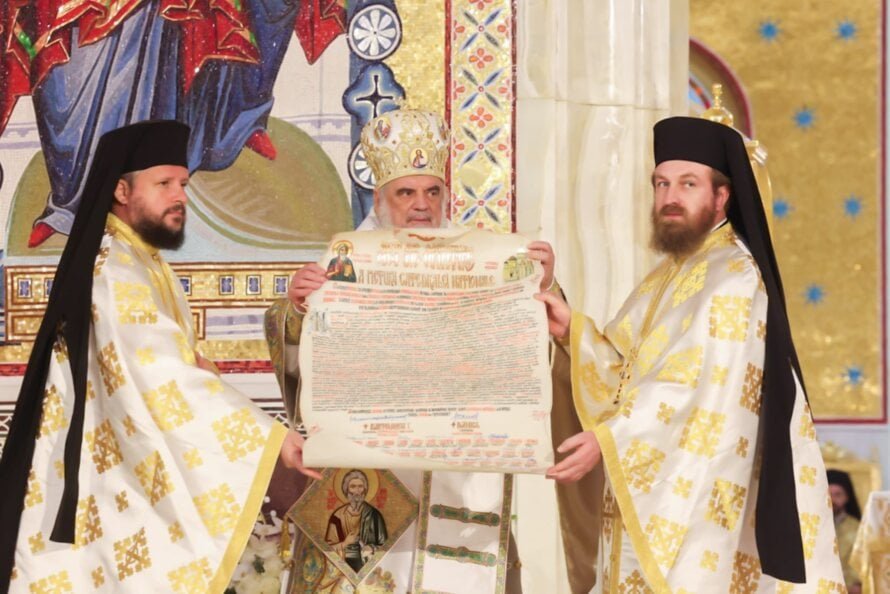 „Dragostea de sfinți a Sanctității Sale apropie mai mult bisericile ortodoxe surori, iar prin cei patru sfinți cuvioși români aghioriți – Sfântul Cuvios Dionisie Vatopedinul de la Colciu și sfinții cuvioși Petroniu, Nifon și Nectarie Protopsaltul de la Prodromu, pe care Sfântul Sinod al Patriarhiei Ecumenice i-a inclus în Sinaxarul Bisericii anul acesta, 2025, în ședințele de lucru din luna august și luna octombrie, ne oferă modele concrete de comuniune și cooperare în Domnul Nostru Iisus Hristos”, a spus Părintele Patriarh, conform Agerpres.