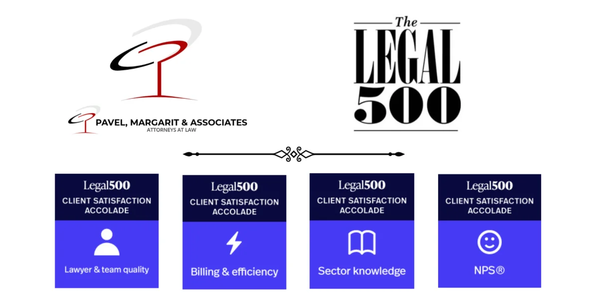 Cele patru premii în cadrul „Legal 500 Client Satisfaction” primite în 2026 – Calitatea avocaților și a echipei, Facturare și eficiență, Cunoașterea sectorului și Net Promoter Score (NPS®) – confirmă pentru echipa de avocați specializați în domeniu de la Pavel, Mărgărit și Asociații o traiectorie construită în ultimii 20 de ani pe o idee simplă: performanța juridică a unui avocat român de top trebuie să fie însoțită de claritate, previzibilitate și respect pentru client. Aceste recunoașteri reflectă echipa puternică de avocați a firmei, capacitatea de a furniza servicii juridice eficiente și transparente, înțelegerea profundă a industriilor în care activează clienții și un nivel ridicat de satisfacție a clienților, măsurat prin Net Promoter Score. Pentru avocații din echipă, recunoașterea internațională de top Legal 500 nu este un punct final, ci reprezintă un reper care obligă echipa să ridice constant standardele interne, să investim în oameni, în procese și în modul în care comunicăm.