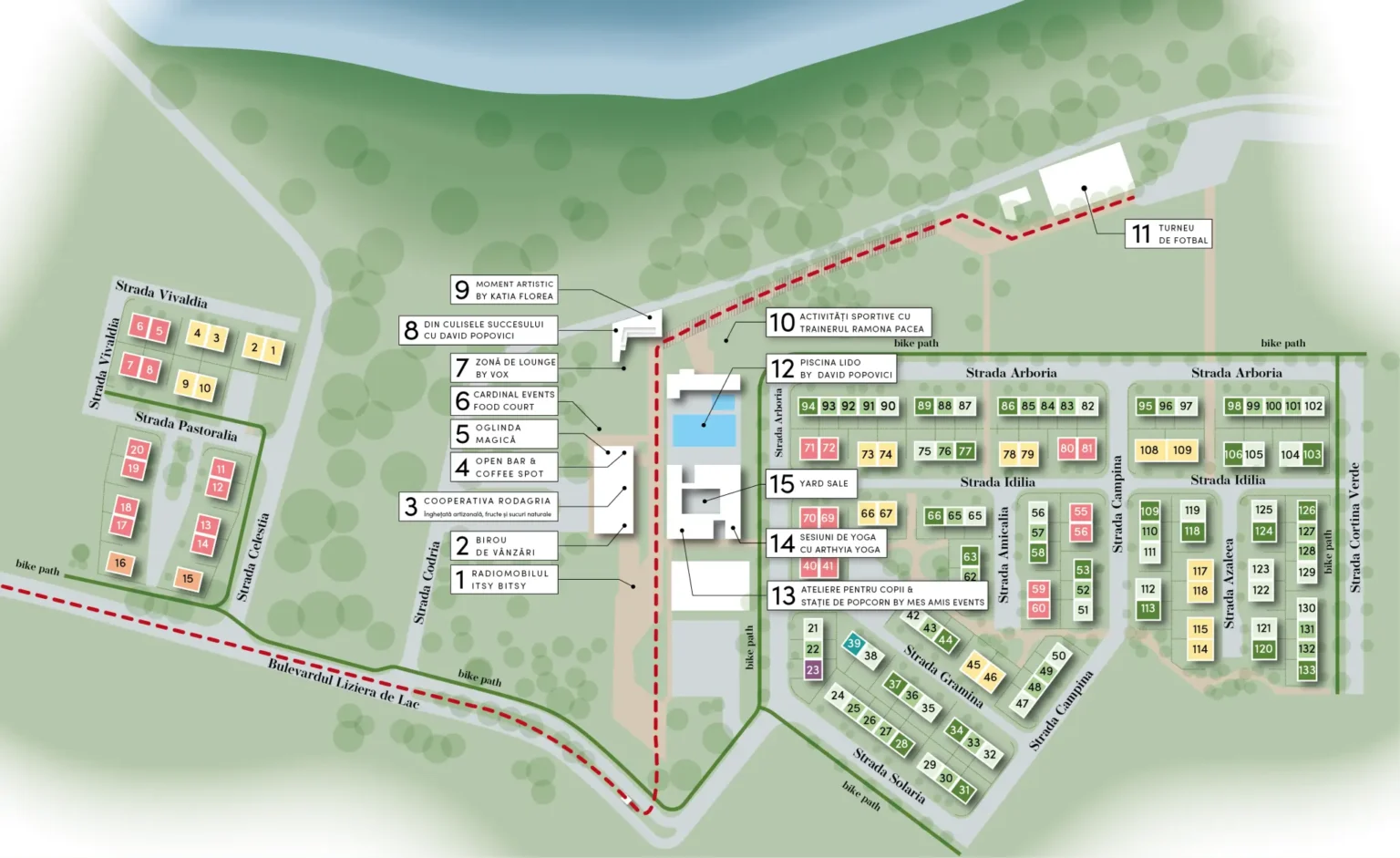 Momentele din program se vor desfășura în apropierea celor mai importante facilități ale ansamblului, precum AGORA Community HUB, în care se află biroul de vânzări, deschis pe parcursul întregului eveniment, spații de coworking, zone de relaxare și sală de fitness, centrul educațional Bobocel, piscina Lido by David Popovici, Croisette, zona de promenadă dedicată celor care caută relaxare și momente de plimbare plăcute, Belvedere, locul de poveste din ansamblu, ce oferă o panoramă spectaculoasă asupra Lacului Tătaru, și MUGA Court, care găzduiește terenul de fotbal și tenis.