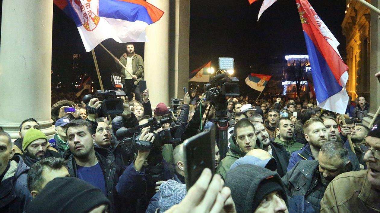 O accentuare serioasă a tensiunilor a început mai ales la Belgrad, începând de sâmbăta trecută, luând forme extrem de grave, inclusiv incidente violente cu forțele de poliție, duminică seară și luni. Duminică, 24 decembrie, manifestanții au paralizat mai multe străzi ale Belgradului, pentru ca apoi să se deplaseze la sediul primăriei unde au fost comise atacuri cu pietre, bastoane, alte obiecte, provocând distrugeri clădirii respective. Numai după o intervenție dură a forțelor de ordine a fost oprită acțiunea inițiată de toate formațiunile de opoziție, inclusiv un mare număr de studenți organizați în ONG-ul „Borba” (Lupta). Au fost operate numeroase arestări și s-au înregistrat răniți, inclusiv în rândul forțelor de ordine. Luni, 25 decembrie, manifestanții au blocat din nou o importantă stradă a capitalei, cerând insistent autorităților revizuirea listelor electorale care, spun ei, se află la originea fraudelor electorale. Astfel de proteste, spun observatori aflați în acest moment la Belgrad, pot dura încă multă vreme, dată fiind motivația opozanților președintelui Aleksandar Vucic. Lidera opoziției din Serbia, Marinika Tepic, a declanșat o grevă a foamei, împreună cu alți șase parlamentari, cu intenția de „a alerta Serbia și străinătatea” în legătură cu fraudarea ultimelor alegeri și pentru a determina organizarea unui nou scrutin.