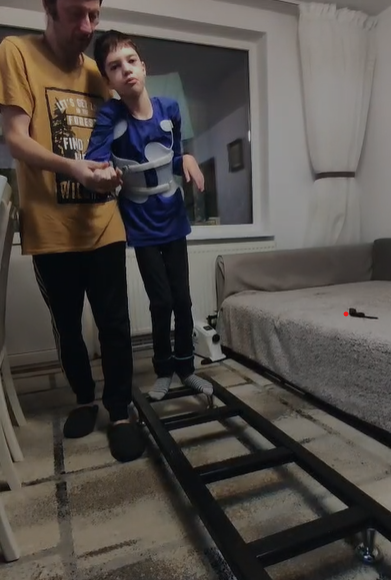 În prezent, crizele sunt parțial controlate medicamentos, însă dezvoltarea cognitivă a copilului este sever afectată, corespunzând vârstei de aproximativ doi ani. Pe acest fond medical complex, evoluția rapidă a scoliozei reprezintă un risc major pentru supraviețuire.