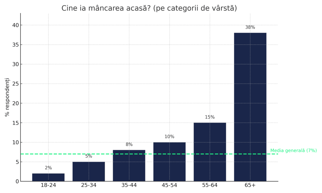 Pentru persoanele de peste 65 de ani, obiceiul de a cere resturile acasă este profund interiorizat. Aproape patru din zece seniori declară că fac acest gest de fiecare dată, în timp ce doar 7% dintre toți respondenții afirmă același lucru.