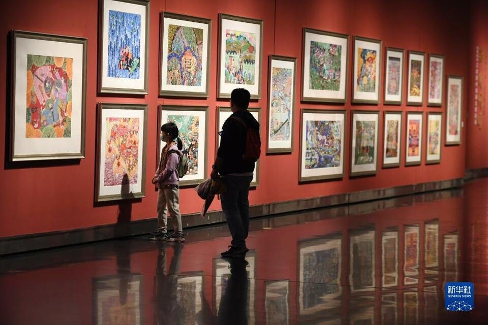 Vizitatorii admiră lucrările expuse la Muzeul Provincial de Artă din Jiangsu.