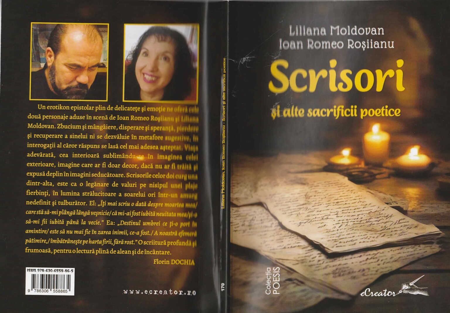 Volumul Scrisori și alte sacrificii poetice, semnat de Liliana Moldovan și Ioan Romeo Roșiianu, se constituie într-un proiect liric dialogal, articulat în jurul ideii de corespondență poetică și confesiune afectivă. Cartea se încadrează în tradiția epistolară a literaturii române, dar o revizitează printr-un filtru contemporan, în care tonul melancolic, tensionările erotice și interogațiile existențiale se împletesc cu o poetică a suferinței și a purificării prin cuvânt.