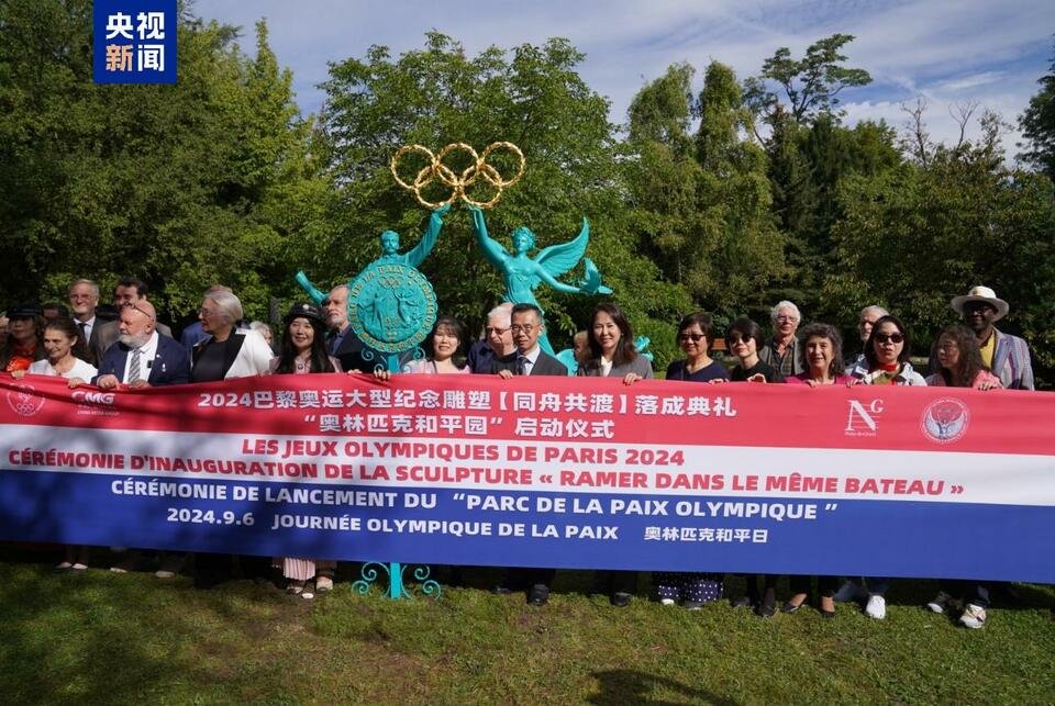 O sculptură cu tematică olimpică donată de China Media Group (CMG) a fost dezvelită vineri, în Parcul Olimpic al Păcii din Château de Catala Paris.