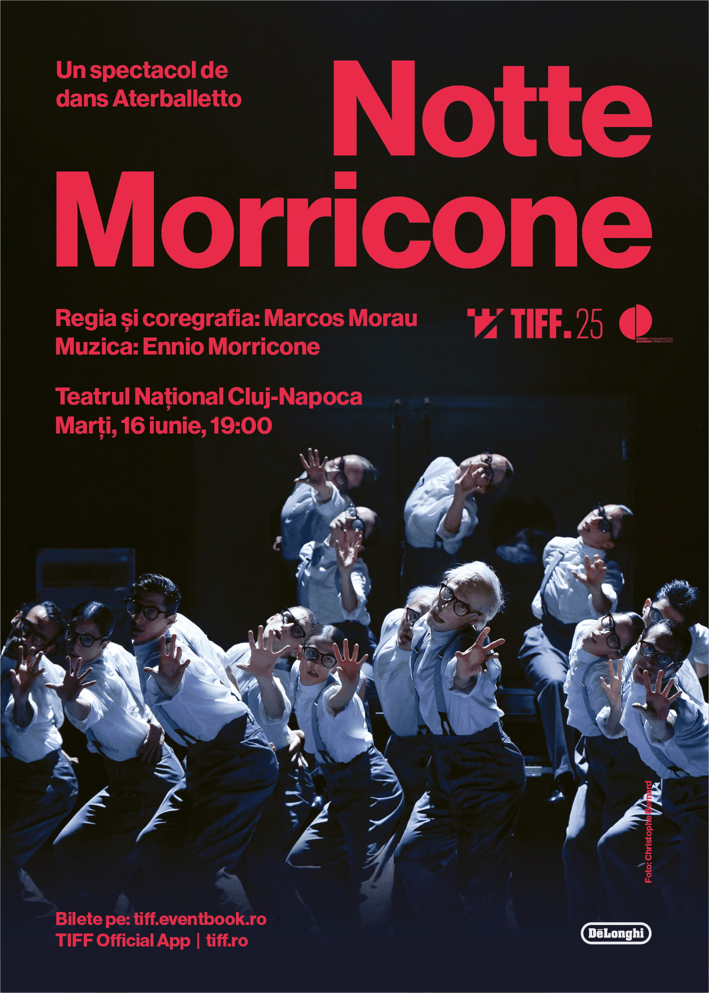 Cu ocazia celei de-a 25-a ediții, Festivalul Internațional de Film Transilvania (TIFF.25, 12 – 21 iunie 2026) a inclus în program un spectacol unic – Notte Morricone – care îmbină coregrafia, muzica și cinematografia într-un omagiu adus legendarului compozitor italian Ennio Morricone. Produs de Centro Coreografico Nazionale / Aterballetto din Italia și semnat de coregraful spaniol Marcos Morau, spectacolul Notte Morricone va avea loc marți, 16 iunie 2026, de la ora 19:00, la Teatrul Național Cluj-Napoca. Biletele au fost puse în vânzare online – https://tiff.eventbook.ro/