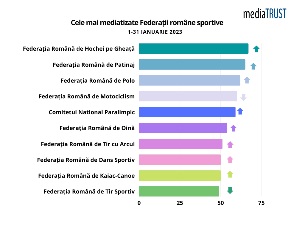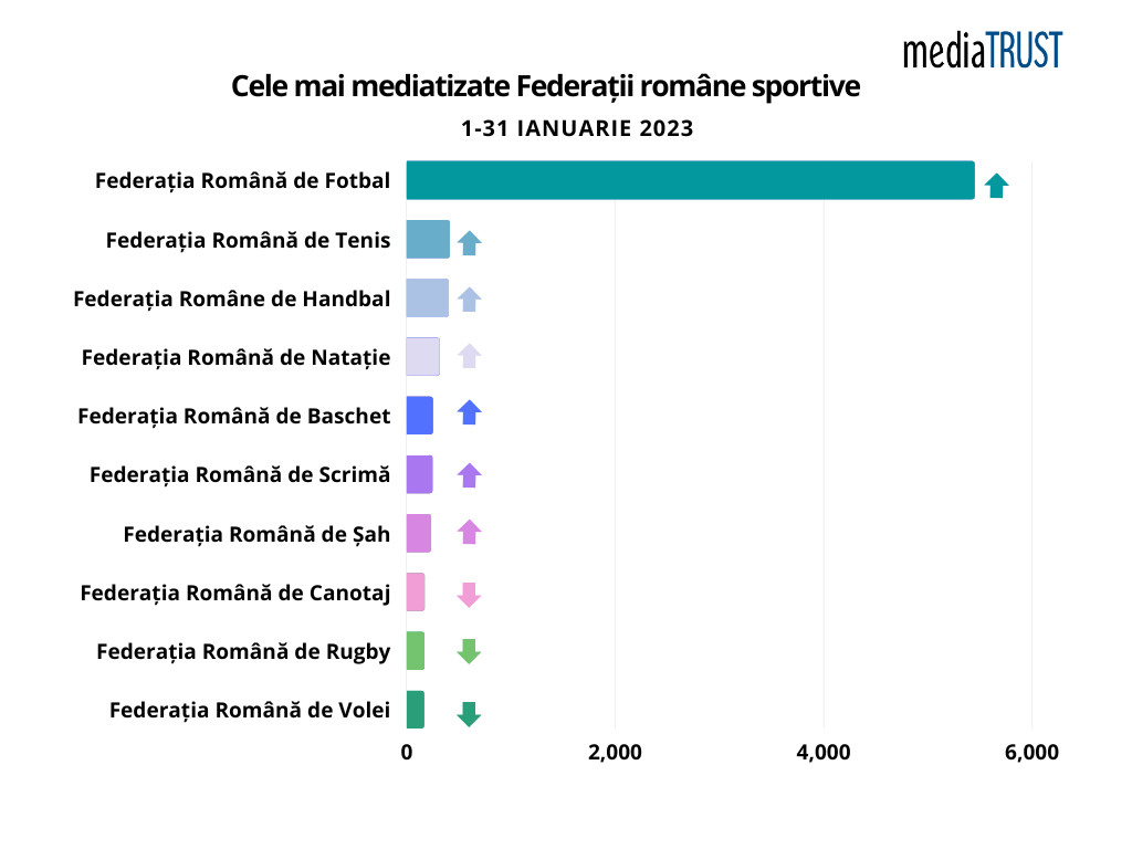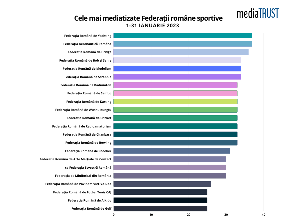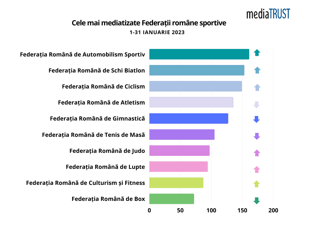mediaTRUST prezintă vizibilitatea în media a tuturor Federațiilor Sportive din România, de la 1 ianuarie – 31 ianuarie 2023.