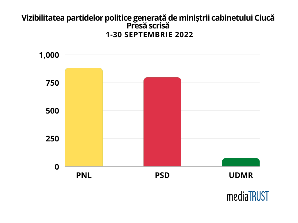 mediaTRUST prezintă studiul vizibilității partidelor politice generate de miniștrii cabinetului Ciucă, în presa scrisă, presa online, radio și TV în perioada 1 septembrie – 30 septembrie 2022.